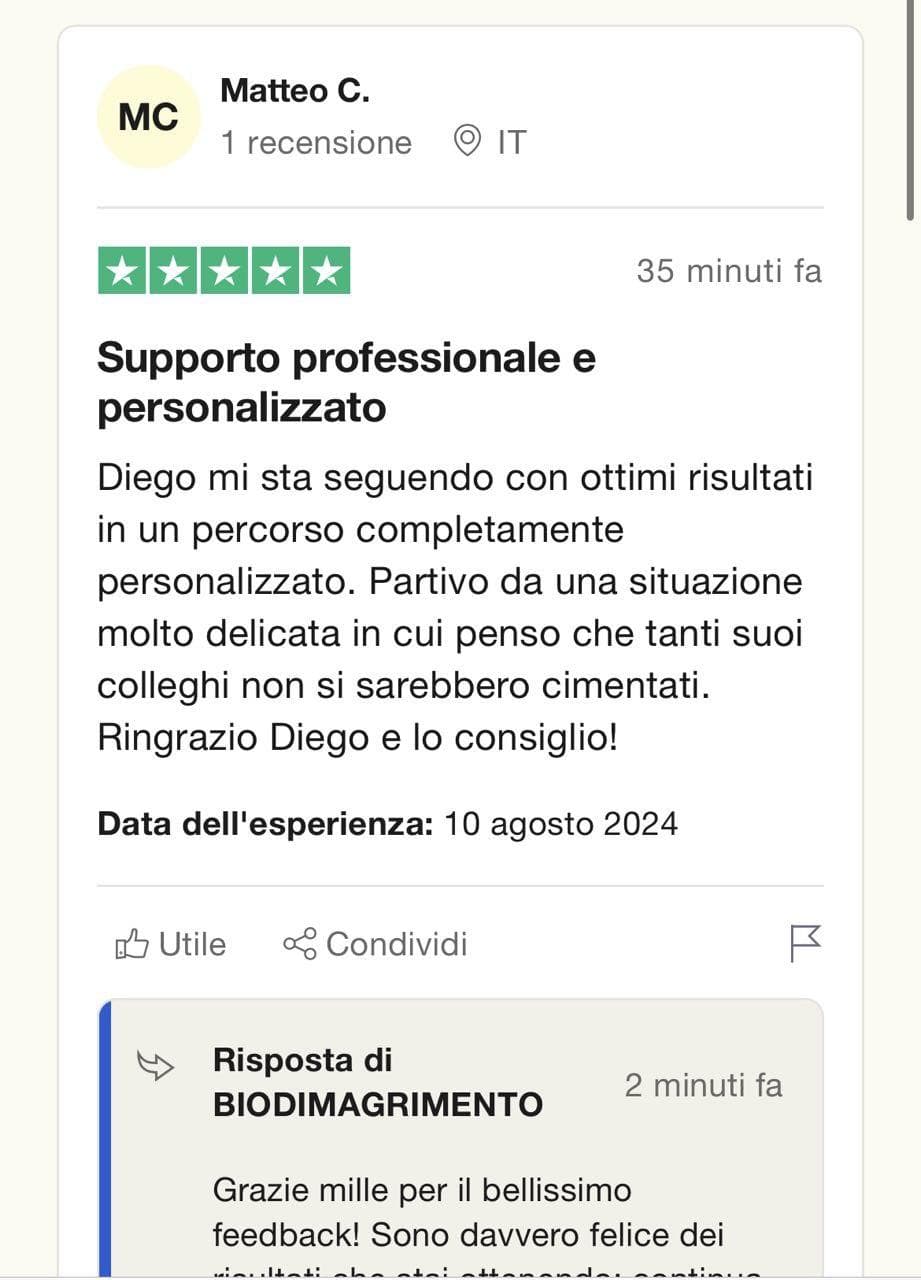 TESTIMONIANZE DEL BIODIMAGRIMENTO